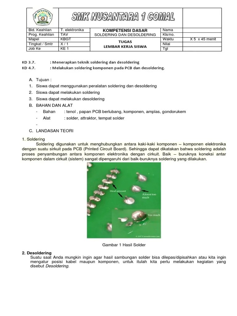 Teknik soldering dan desoldering jurusan teknik elektronika industri by.